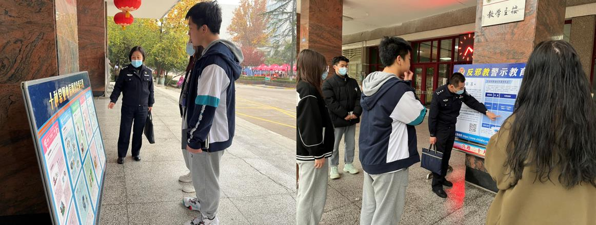 会前,渭滨分局民警还在教学楼前通过防电信诈骗、反邪教宣传展板,向公司同学进行知识宣传与普及。此次宣讲会既落实了学校营造平安校园、和谐校园的要求,也让同学们认识到反诈、反邪教的重要性,树立了防范意识,掌握了相关防诈知识。